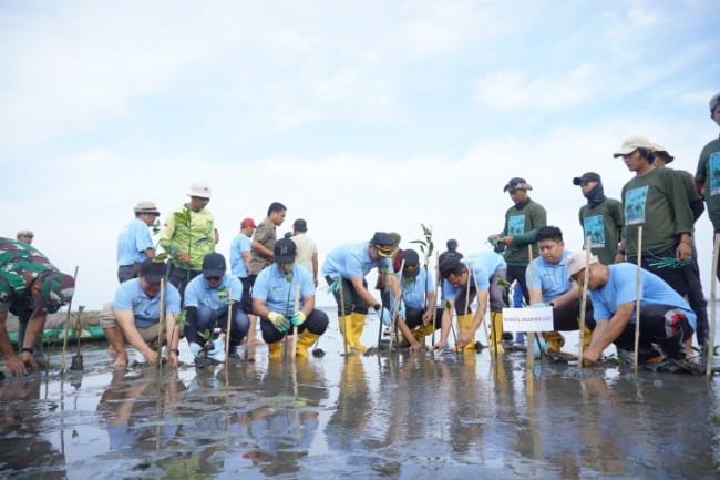 Penanaman mangrove ini, kerjasama Dinas Lingkungan Hidup dengan PT Taspen.