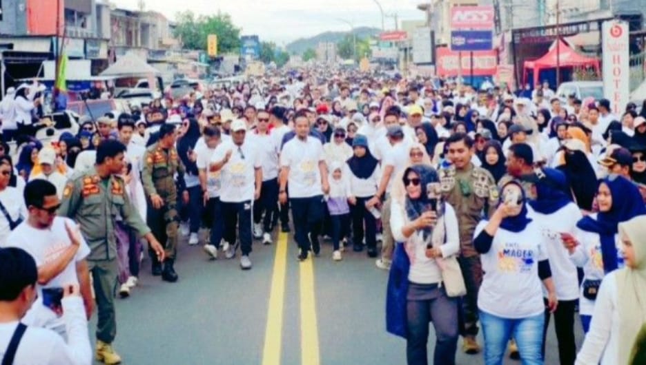 Sulawesi Selatan (Sulsel) Andi Sudirman Sulaiman ikut meriahkan Jalan Sehat Anti Mager (Malas Gerak) sebagai rangkaian kegiatan Hari Jadi ke 66 Kabupaten Luwu di Belopa, Kamis (3/7/2025)