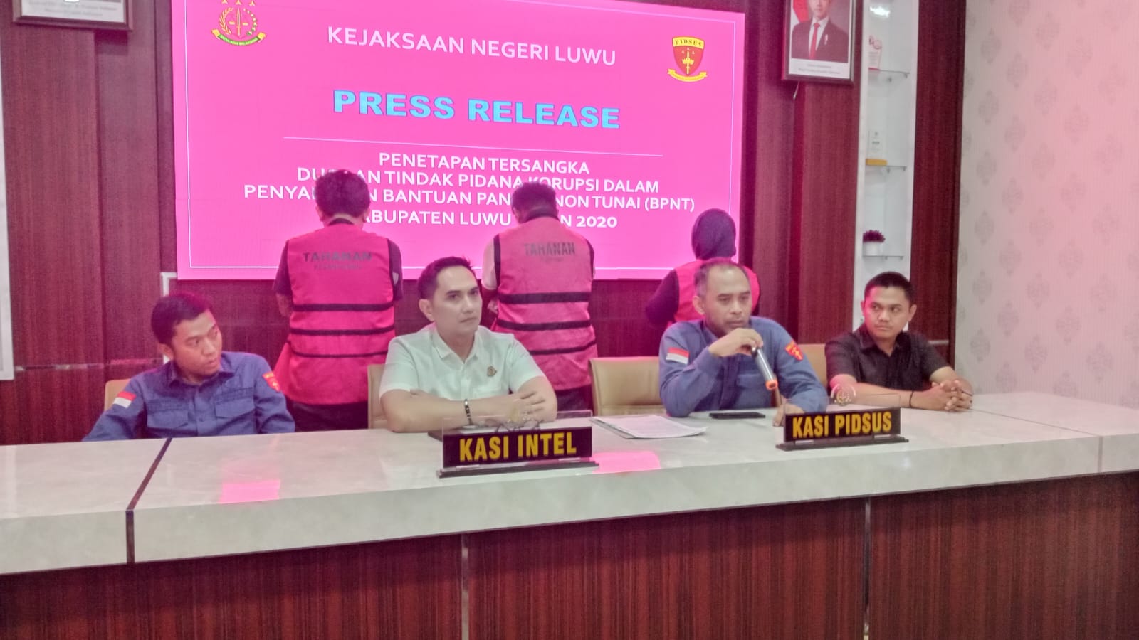 “Jadi hari ini Jumat tanggal 5 Desember 2025, tim penyidik tindak pidana khusus Kejaksaan Negeri Kabupaten Luwu telah menetapkan tiga orang tersangka dalam perkara BPNT tahun 2020,” ujarnya.