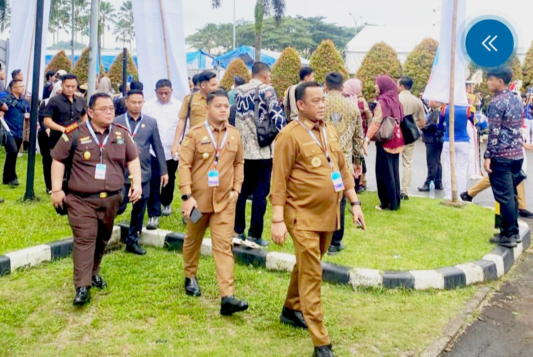 Tampak Kepala Bapenda Luwu, Sofyan Thamrin memakai kemeja Putih mendampi Bupati Luwu, Wabup Luwu, Ketua DPRD Luwu dan Kajari di lokasi Rakornas, Sentul, Bogor Foto: sc- FB: Mdbp centre