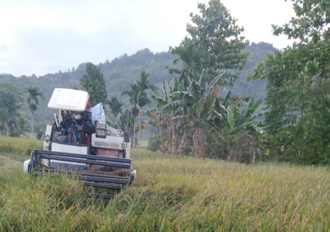 Salah satu Alisintan sejenis Combine yang digunakan petani di, Bajo, Luwu saat ini yang tengah panen mayoritas di sewa dari luar wilayah Luwu. Foto: saorakyat