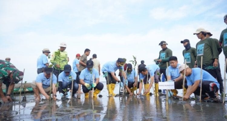LUWU, SAORAKYAT—Sebanyak 1.700 pohon mangrove ditanam di Pantai Mamunta, Desa Seppong, Kecamatan Belopa Utara, Kamis