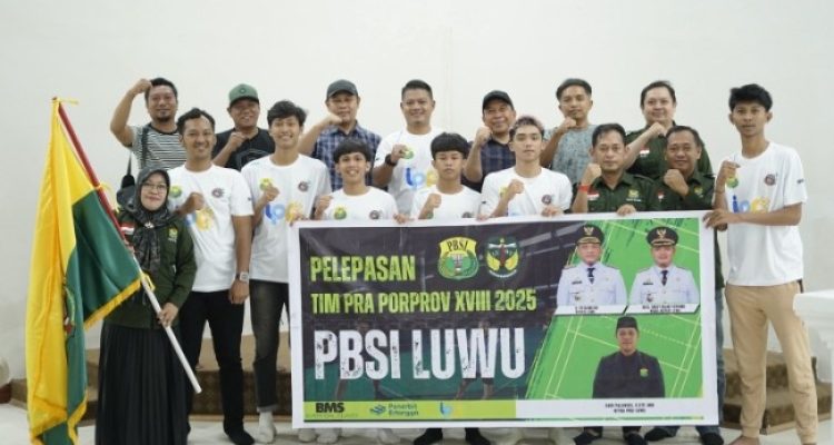 LUWU, SAORAKYAT—Wakil Bupati Luwu, Muh. Dhevy Bijak Pawindu, melepas secara resmi kontingen atlet bulu tangkis