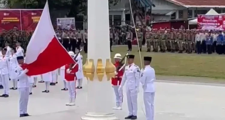 SULBAR, SAORAKYAT—Tangis sejumlah Pasukan Pengibar Bendera Pusaka (Paskibraka) pada upacara HUT ke-80 RI di Kabupaten